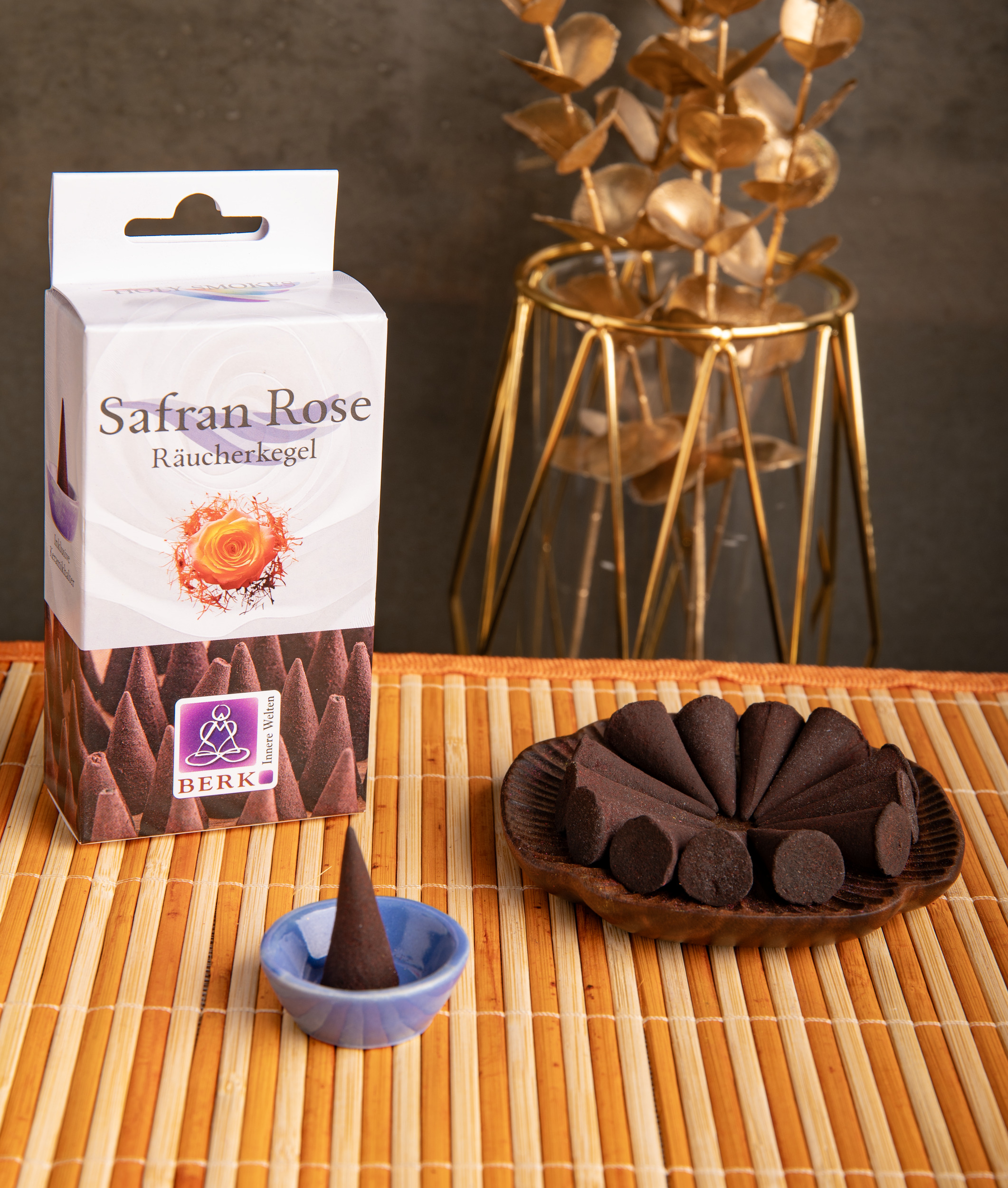Diese edle Räuchermischung vereint die wärmende Kraft des Safrans mit der herzöffnenden Sanftheit der Rose.