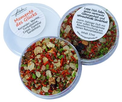 Zum Verräuchern auf Räucherstövchen mit Teelicht oder in Räuchergefäßen auf Räucherkohle geeignet.