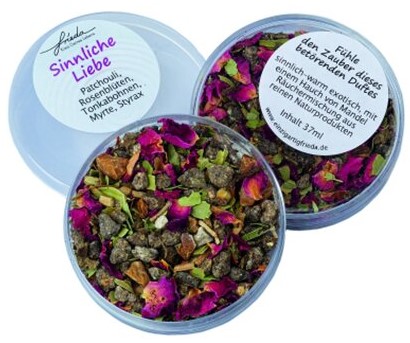 Zum Verräuchern auf Räucherstövchen mit Teelicht oder in Räuchergefäßen auf Räucherkohle geeignet.