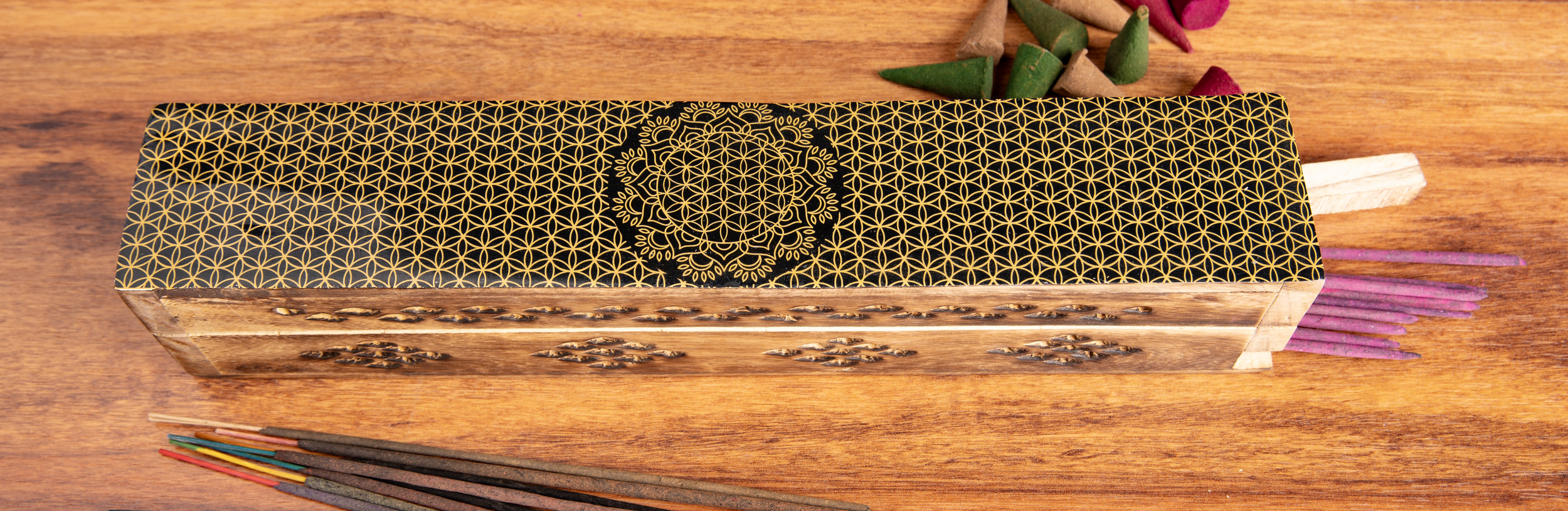 Fantasy Blume des Lebens - Räucherbox aus Mangoholz - Berk